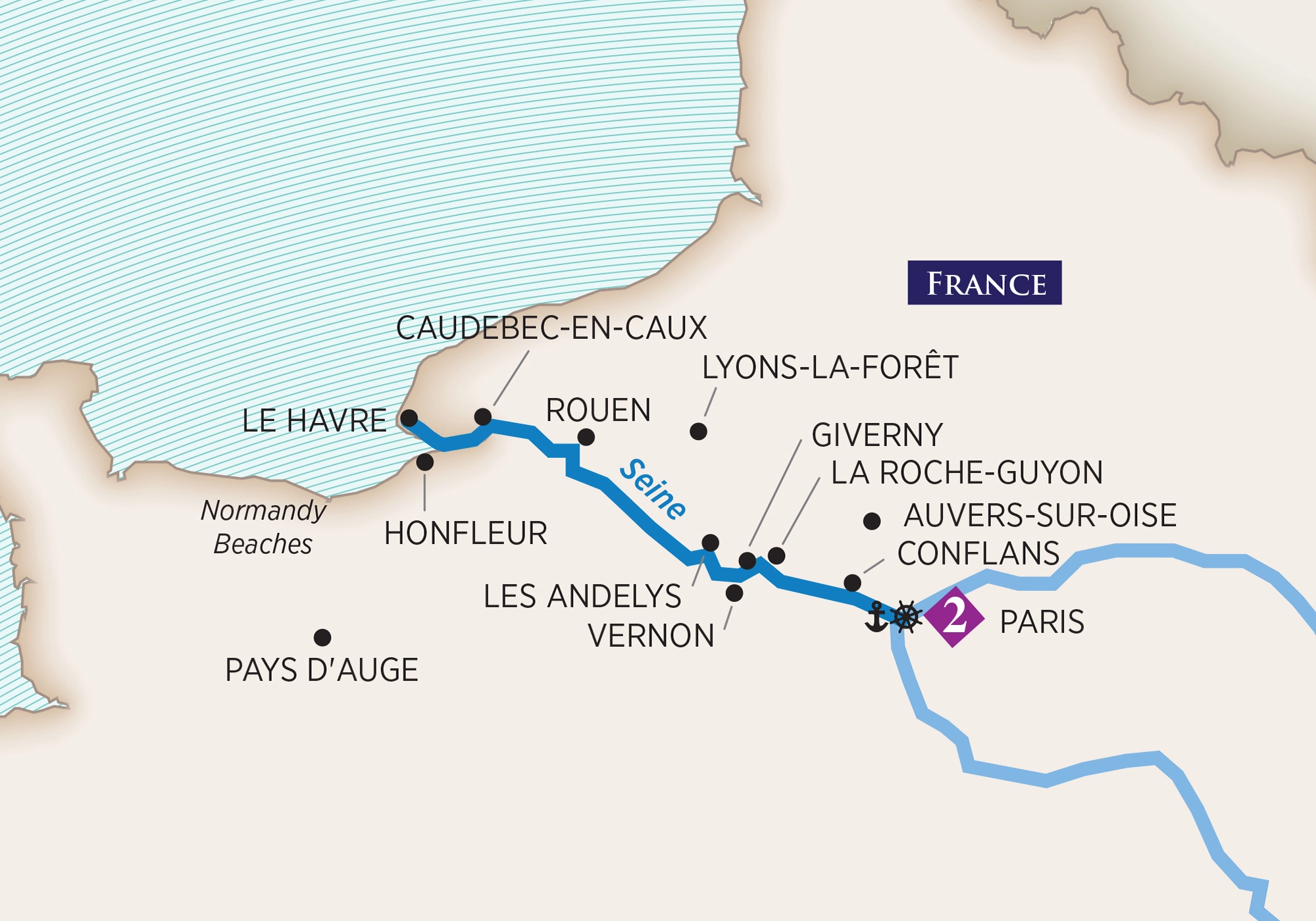 Board the ship in Paris for your Paris & Normandy cruise. (D)